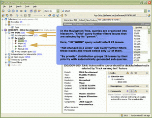 Browse through issues with hierarchical drill-down and create filters with advanced queries.
